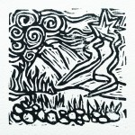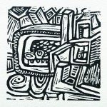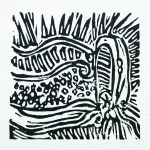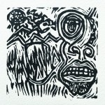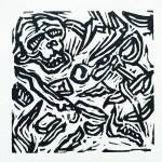 Also included are a set of postcards showing the original Lino cut images for each track.